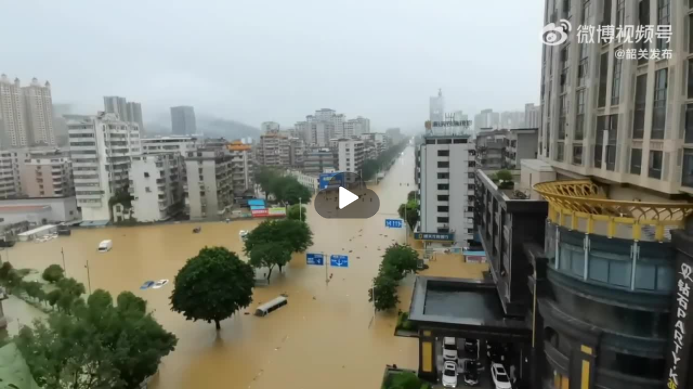 另据广东省韶关市人民政府新闻办公室官方微博(@韶关发布)6月21日消息,据市有关部门研判,韶关市发生超五十年一遇洪水。请广大市民迅速赶往高处紧急避险。